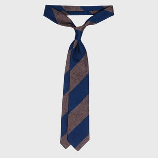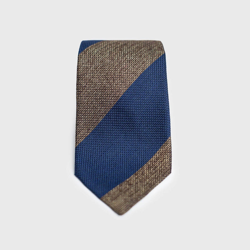 Elevate your style with the Light Brown and French Blue Block Striped Grenadine Tie, an essential piece for the modern gentleman seeking quality and sophistication.