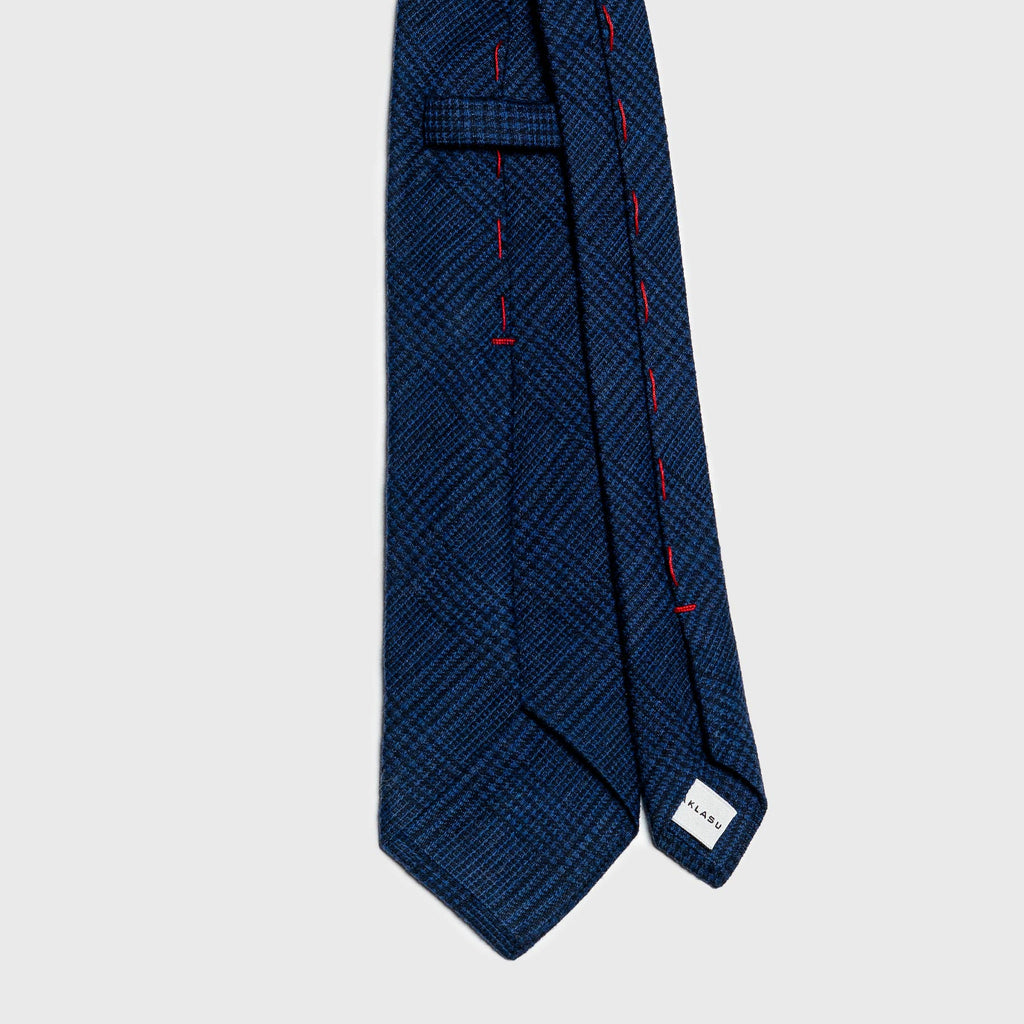 Woven from a substantial wool and silk blend, the tie carries structure without stiffness. This tie features a red contrasting tension thread. The tension thread is a loose silk thread that runs through the entirety of the tie. It allows the tie to retain its shape after each wear.