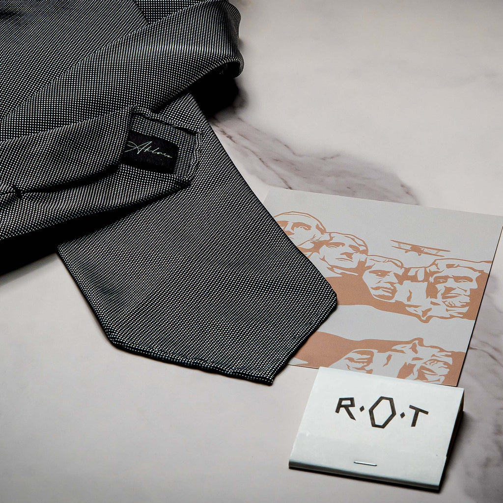 There is a subtle tension in its lines, shaped by midcentury suspense, mistaken identities, and suitcases packed in haste. Whether worn under the scrutiny of a cross examination or while slipping through a crowd in sharp tailoring, the Thornhill Tie brings composure to the unpredictable. Sophisticated yet elusive, it leaves an impression without leaving a trace.